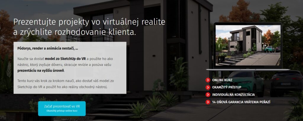 Aby sme tento proces zjednodušili, pripravili sme online kurz Virtuálna realita v architektúre a dizajne, kde jednotlivé riešenia systematicky porovnávame, ukazujeme praktické pracovné postupy a vysvetľujeme technické nároky.